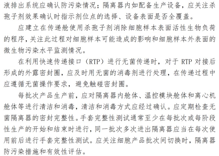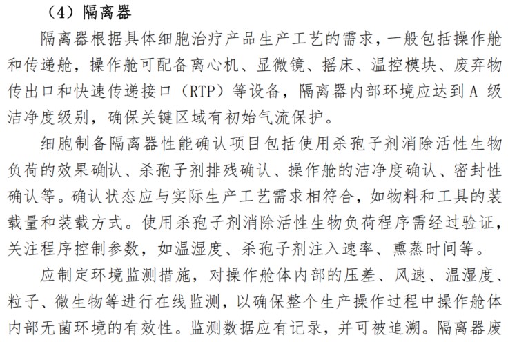 隔離器是細(xì)胞治療產(chǎn)品生產(chǎn)的常見設(shè)備,是無菌生產(chǎn)的必要條件,《指南》中對(duì)隔離器的要求主要包括以下幾個(gè)方面:
