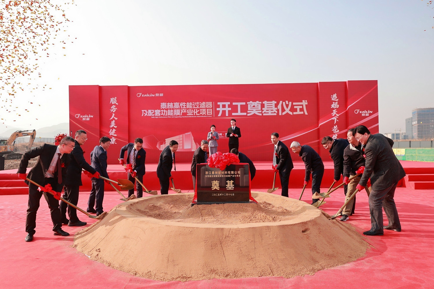 2025年12月17日上午,浙江泰林新材料有限公司高性能過濾器及配套功能膜產(chǎn)業(yè)化項目開工奠基儀式隆重舉行。中共杭州市富陽區(qū)委常委、杭州富春灣新城管委會主任孫偉,杭州市富陽區(qū)靈橋鎮(zhèn)黨委書記章繪,浙江省新材料產(chǎn)業(yè)協(xié)會理事長、浙江大學教授、浙江省特級專家楊輝,泰林生物董事長、總裁葉大林,泰林生物副總裁、泰林新材料總經(jīng)理沈志林,泰林生物副總裁、泰林醫(yī)學工程總經(jīng)理夏信群,泰林生物獨立董事董明、倪崖、厲國威,項目設計單位、總包單位、監(jiān)理單位代表,泰林生物及旗下子公司管理團隊均蒞臨現(xiàn)場,共同見證了這一重要時刻!